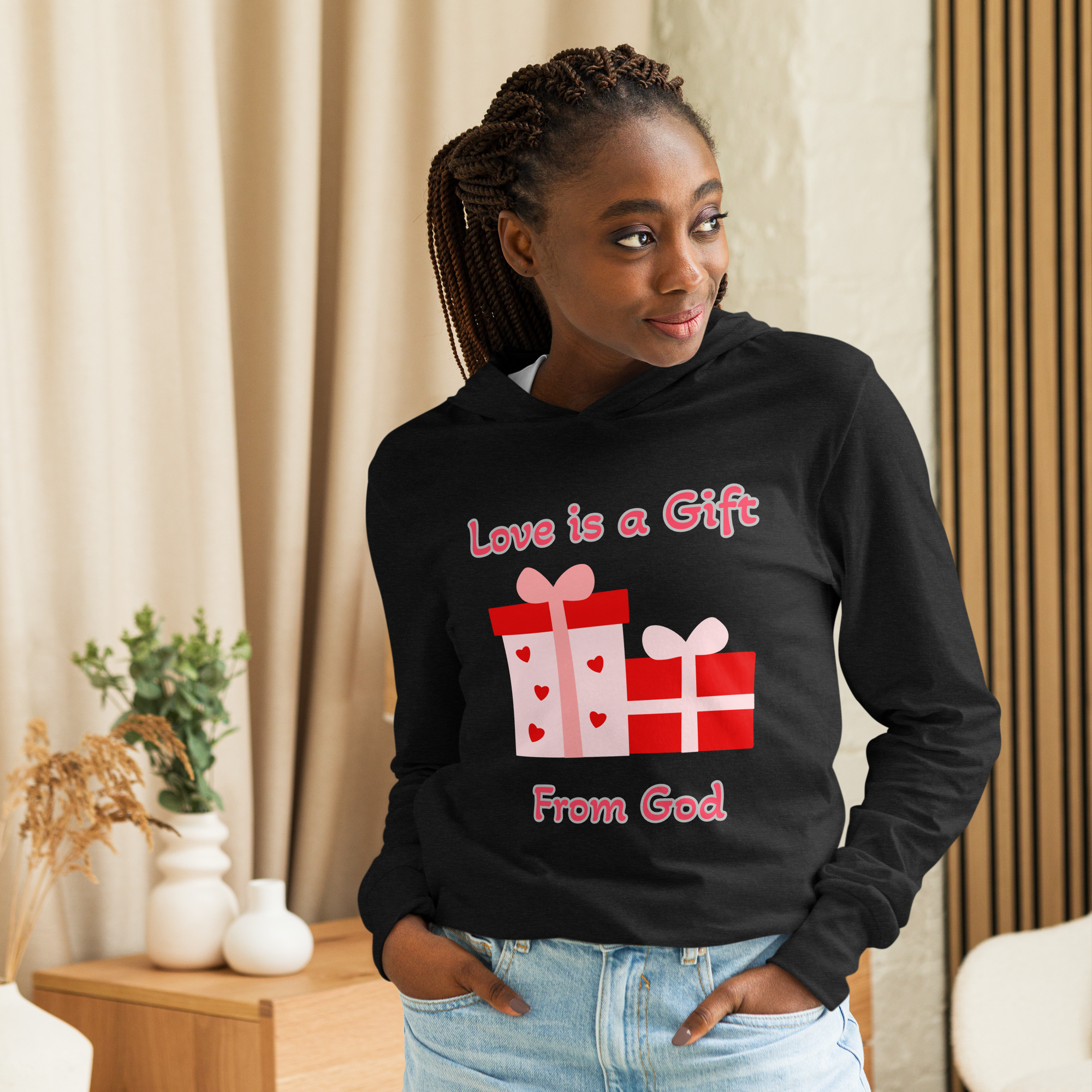 With its long sleeves and comfortable hood, this tee is perfect for layering, allowing you to create stylish outfits all year round. Plus, its lightweight construction allows for unrestricted movement, ensuring that you feel at ease no matter the occasion.